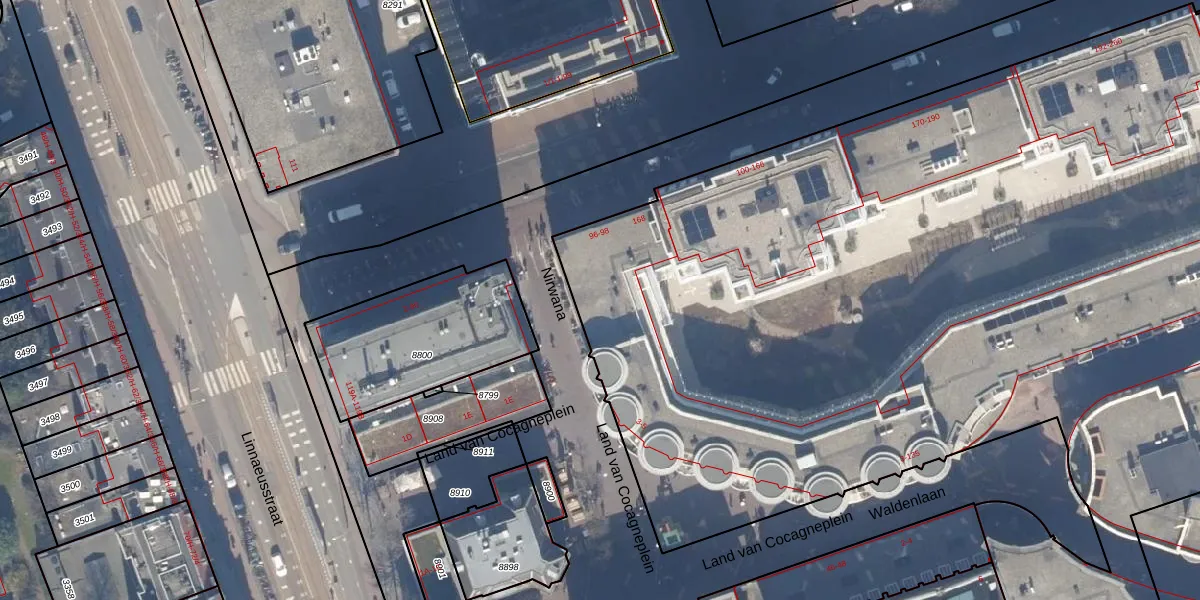 Het adres ligt op het perceel ASD19-W-8607, dat zich in de kadastrale gemeente Amsterdam bevindt. Het perceel is met 1,4 ha relatief groot. Het gemiddelde ligt in de kadastrale gemeente Amsterdam op 1563,05 m². De grootste perceeloppervlakte in de kadastrale gemeente is 17,9 ha. De kleinste oppervlakte bedraagt 0 m². Op het perceel zijn 312 adressen aanwezig. De huidige grenzen van het perceel zijn digitaal in de Basisregistratie Kadaster (BRK) geregistreerd op 29-11-2010.