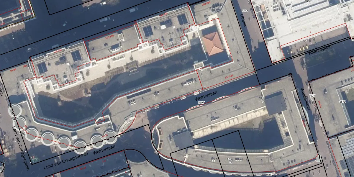 Het adres ligt op het perceel ASD19-W-8607, dat zich in de kadastrale gemeente Amsterdam bevindt. Het perceel is met 1,4 ha relatief groot. Het gemiddelde ligt in de kadastrale gemeente Amsterdam op 1563,05 m². De grootste perceeloppervlakte in de kadastrale gemeente is 17,9 ha. De kleinste oppervlakte bedraagt 0 m². Op het perceel zijn 312 adressen aanwezig. In de Basisregistratie Kadaster (BRK) werden de grenzen van het perceel geregistreerd op 29-11-2010.