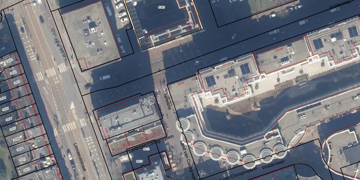 Het adres ligt op het perceel ASD19-W-8607, dat zich in de kadastrale gemeente Amsterdam bevindt. Het perceel is met 1,4 ha relatief groot. Het gemiddelde ligt in de kadastrale gemeente Amsterdam op 1563,05 m². De grootste perceeloppervlakte in de kadastrale gemeente is 17,9 ha. De kleinste oppervlakte bedraagt 0 m². Op het perceel zijn 312 adressen aanwezig. In de Basisregistratie Kadaster (BRK) werden de grenzen van het perceel geregistreerd op 29-11-2010.
