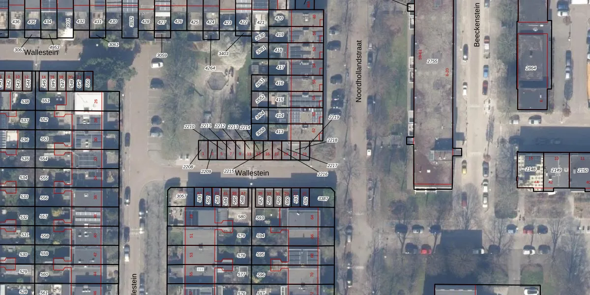 Het perceel waarop Wallestein 21 staat heeft een oppervlakte van 20 m². Dit is een klein perceel. De perceeloppervlakte wordt geregistreerd door het Kadaster. Gedetailleerde informatie over de maten van dit perceel kunt u vinden in het rapport Kadastrale kaart met maatvoering van Wallestein 21.