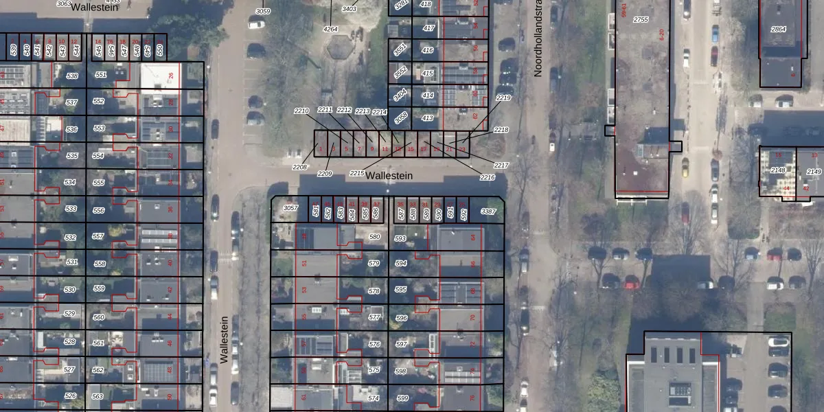 Het perceel waarop Wallestein 33 staat heeft een oppervlakte van 20 m². Dit is een klein perceel. De perceeloppervlakte wordt geregistreerd door het Kadaster. Gedetailleerde informatie over de maten van dit perceel kunt u vinden in het rapport Kadastrale kaart met maatvoering van Wallestein 33.