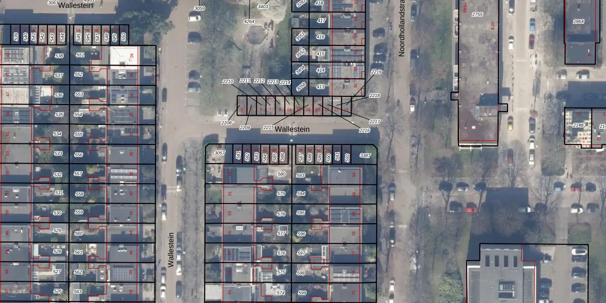 Het perceel waarop Wallestein 35 staat heeft een oppervlakte van 21 m². Dit is een klein perceel. De perceeloppervlakte wordt geregistreerd door het Kadaster. Gedetailleerde informatie over de maten van dit perceel kunt u vinden in het rapport Kadastrale kaart met maatvoering van Wallestein 35.