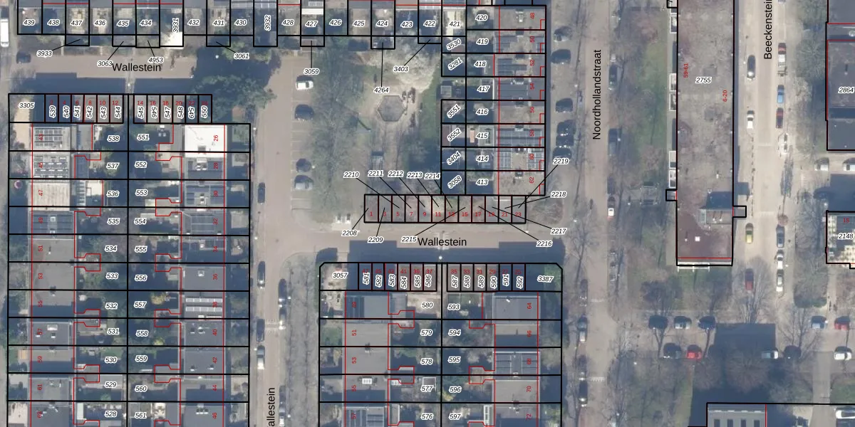 Het perceel waarop Wallestein 9 staat heeft een oppervlakte van 20 m². Dit is een klein perceel. De perceeloppervlakte wordt geregistreerd door het Kadaster. Gedetailleerde informatie over de maten van dit perceel kunt u vinden in het rapport Kadastrale kaart met maatvoering van Wallestein 9.