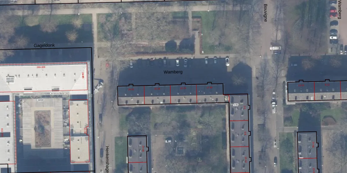Het perceel waarop Wamberg 24 staat heeft een oppervlakte van 1361 m². Dit is een zeer groot perceel. De perceeloppervlakte wordt geregistreerd door het Kadaster. Gedetailleerde informatie over de maten van dit perceel kunt u vinden in het rapport Kadastrale kaart met maatvoering van Wamberg 24.