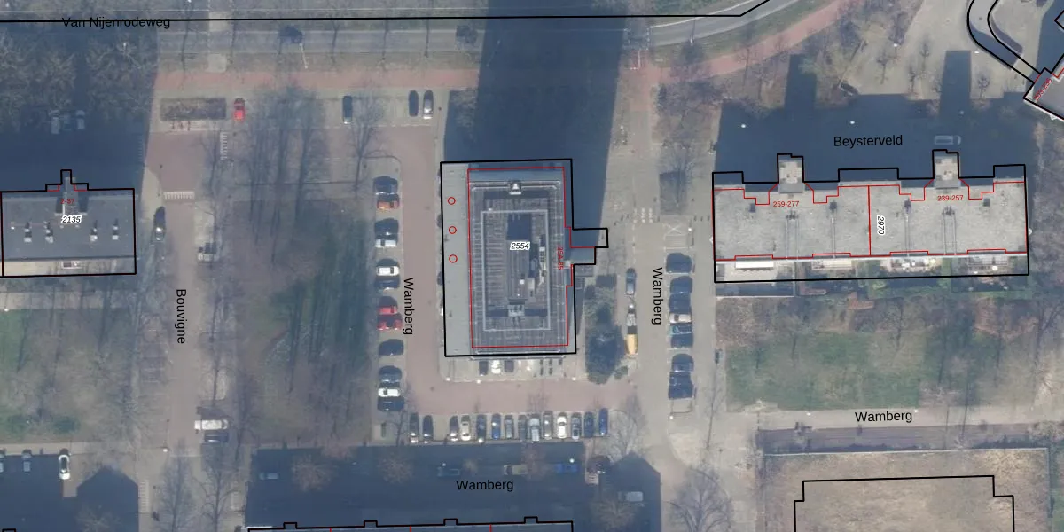 Het perceel waarop Wamberg 61 staat heeft een oppervlakte van 930 m². Dit is een groot perceel. De perceeloppervlakte wordt geregistreerd door het Kadaster. Gedetailleerde informatie over de maten van dit perceel kunt u vinden in het rapport Kadastrale kaart met maatvoering van Wamberg 61.