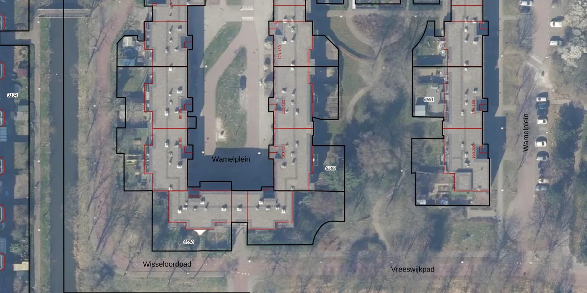 Het perceel waarop Wamelplein 110 staat heeft een oppervlakte van 900 m². Dit is een groot perceel. De perceeloppervlakte wordt geregistreerd door het Kadaster. Gedetailleerde informatie over de maten van dit perceel kunt u vinden in het rapport Kadastrale kaart met maatvoering van Wamelplein 110.
