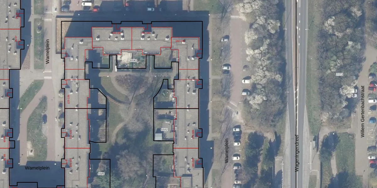 Wamelplein 174 is gelegen op kadastraal perceel WPK02L6590. Deze kadastrale aanduiding is uniek en wordt gebruikt door het Kadaster om eigendomsrechten en andere zakelijke rechten vast te leggen. Het perceel maakt onderdeel uit van de kadastrale gemeente Weesperkarspel.