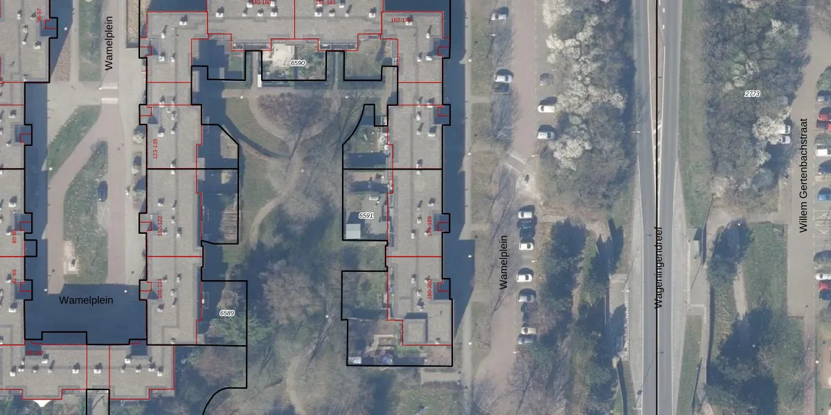 Wamelplein 182 is gelegen op kadastraal perceel WPK02L6591. Deze kadastrale aanduiding is uniek en wordt gebruikt door het Kadaster om eigendomsrechten en andere zakelijke rechten vast te leggen. Het perceel maakt onderdeel uit van de kadastrale gemeente Weesperkarspel.