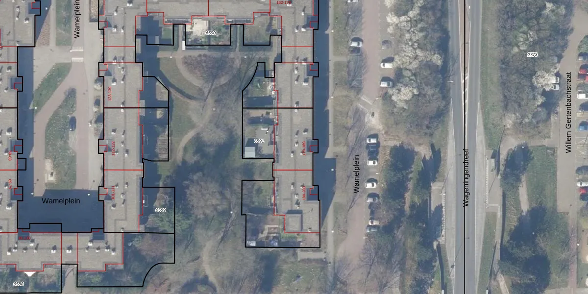 Wamelplein 185 is gelegen op kadastraal perceel WPK02L6591. Deze kadastrale aanduiding is uniek en wordt gebruikt door het Kadaster om eigendomsrechten en andere zakelijke rechten vast te leggen. Het perceel maakt onderdeel uit van de kadastrale gemeente Weesperkarspel.