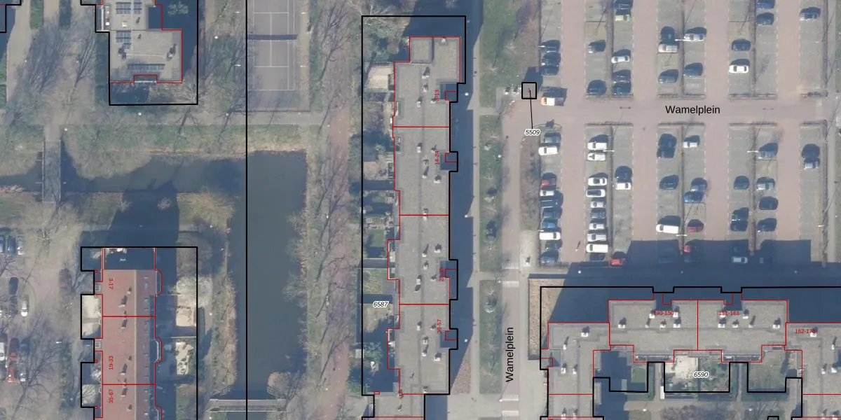 Het perceel waarop Wamelplein 24 staat heeft een oppervlakte van 2375 m². Dit is een zeer groot perceel. De perceeloppervlakte wordt geregistreerd door het Kadaster. Gedetailleerde informatie over de maten van dit perceel kunt u vinden in het rapport Kadastrale kaart met maatvoering van Wamelplein 24.