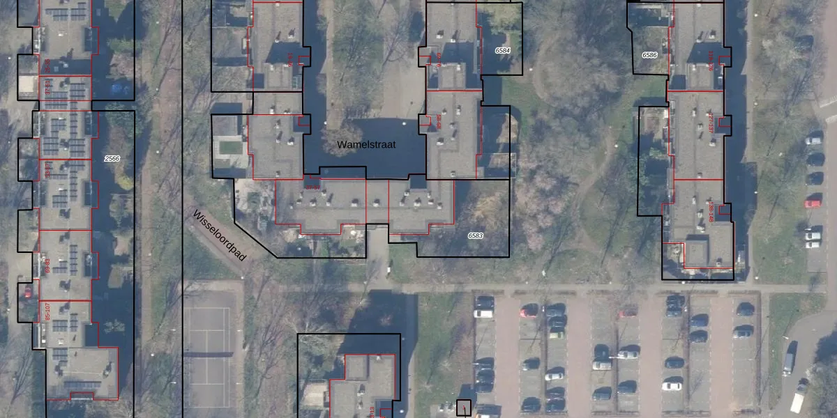 Het perceel waarop Wamelstraat 54 staat heeft een oppervlakte van 1585 m². Dit is een zeer groot perceel. De perceeloppervlakte wordt geregistreerd door het Kadaster. Gedetailleerde informatie over de maten van dit perceel kunt u vinden in het rapport Kadastrale kaart met maatvoering van Wamelstraat 54.