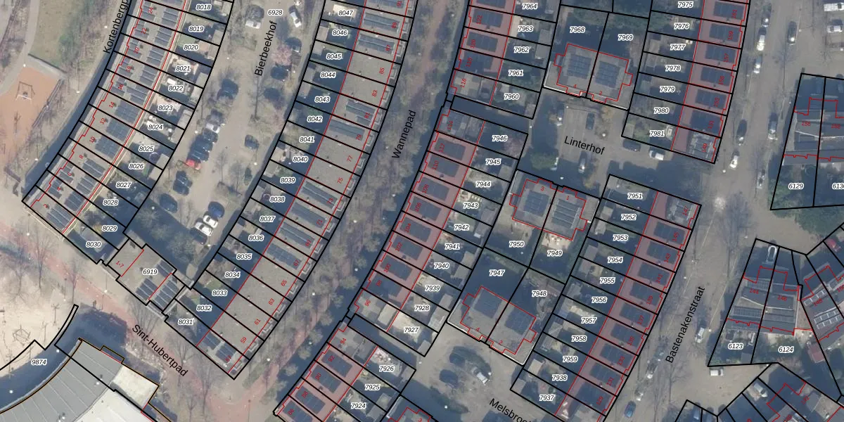 Gebruik de zoekbalk of klik op een perceel voor informatie over de adressen binnen dit perceel.