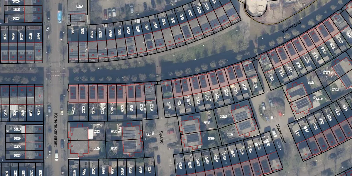 Gebruik de zoekbalk of klik op een perceel voor informatie over de adressen binnen dit perceel.