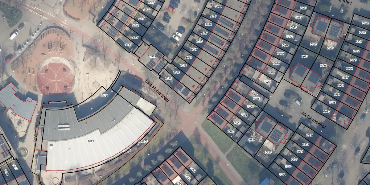 Gebruik de zoekbalk of klik op een perceel voor informatie over de adressen binnen dit perceel.