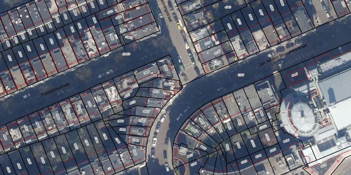 Het adres is gelegen op perceel 3990 in de sectie U en de kadastrale gemeente Amsterdam. De kadastrale aanduiding is aldus ASD17-U-3990. Het perceel is kleiner dan gemiddeld in Amsterdam. Het perceel is 113 m² groot, terwijl het gemiddelde ligt op 394,52 m². De grootste perceeloppervlakte in de kadastrale gemeente is 22,9 ha. De kleinste oppervlakte bedraagt 0 m². Op het perceel liggen in totaal 3 adressen. De huidige grenzen van het perceel zijn digitaal in de Basisregistratie Kadaster (BRK) geregistreerd op 08-12-2006.