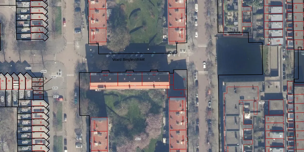 Het perceel waarop Ward Bingleystraat 7-1 staat heeft een oppervlakte van 6161 m². Dit is een zeer groot perceel. De perceeloppervlakte wordt geregistreerd door het Kadaster. Gedetailleerde informatie over de maten van dit perceel kunt u vinden in het rapport Kadastrale kaart met maatvoering van Ward Bingleystraat 7-1.