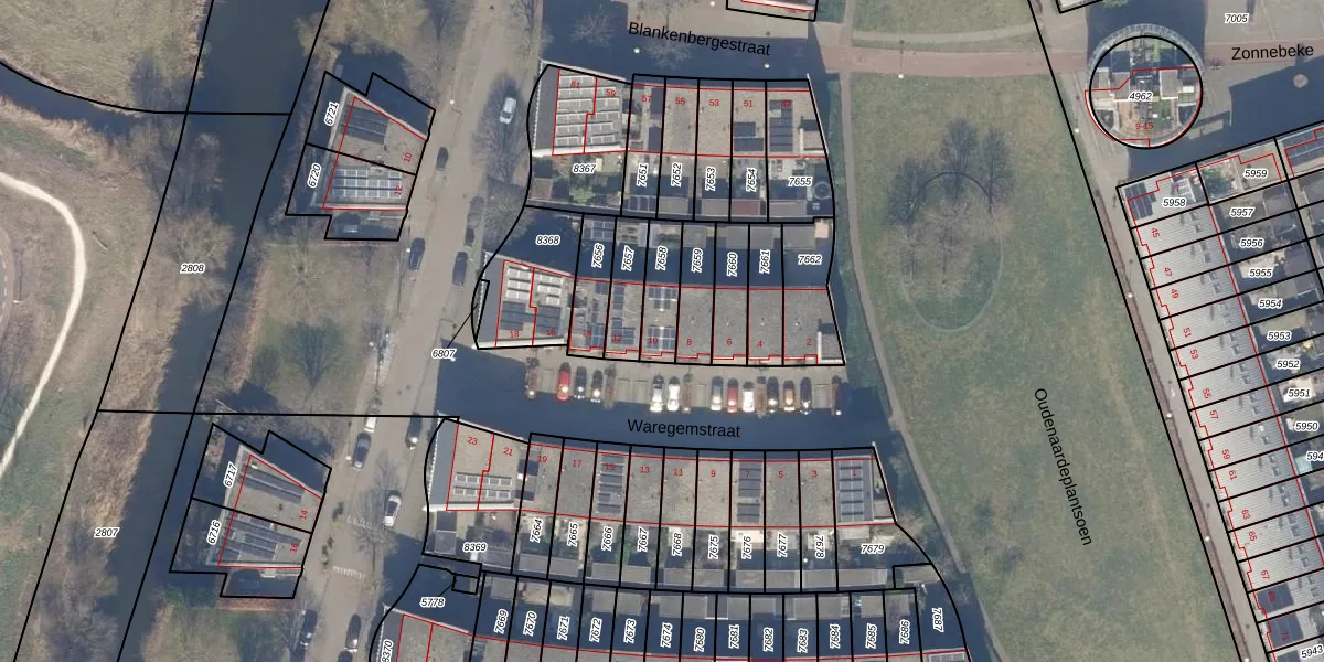 Gebruik de zoekbalk of klik op een perceel voor informatie over de adressen binnen dit perceel.