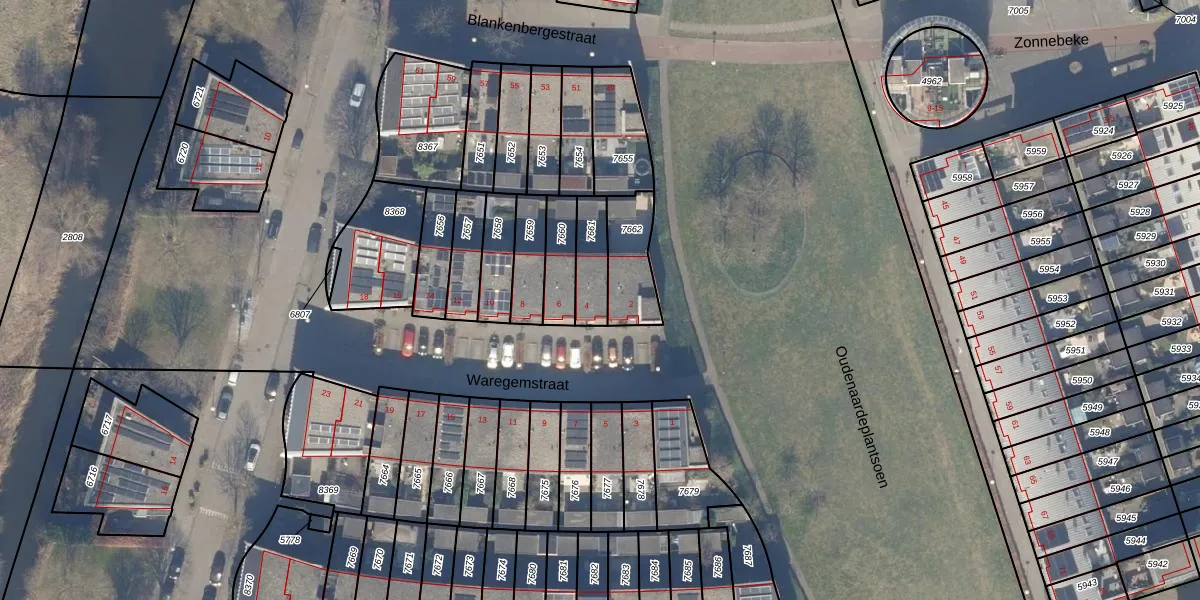 Gebruik de zoekbalk of klik op een perceel voor informatie over de adressen binnen dit perceel.