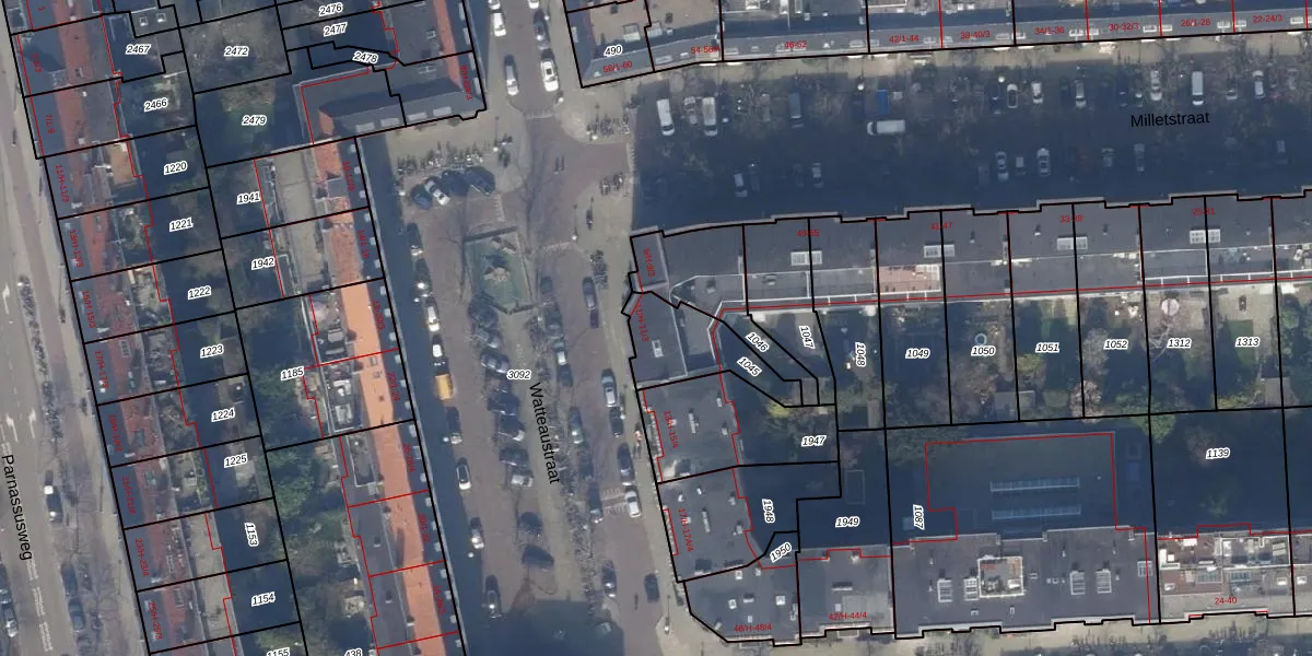 Watteaustraat 11-H is gelegen op kadastraal perceel ASD23AB1045. Deze kadastrale aanduiding is uniek en wordt gebruikt door het Kadaster om eigendomsrechten en andere zakelijke rechten vast te leggen. Het perceel maakt onderdeel uit van de kadastrale gemeente Amsterdam.