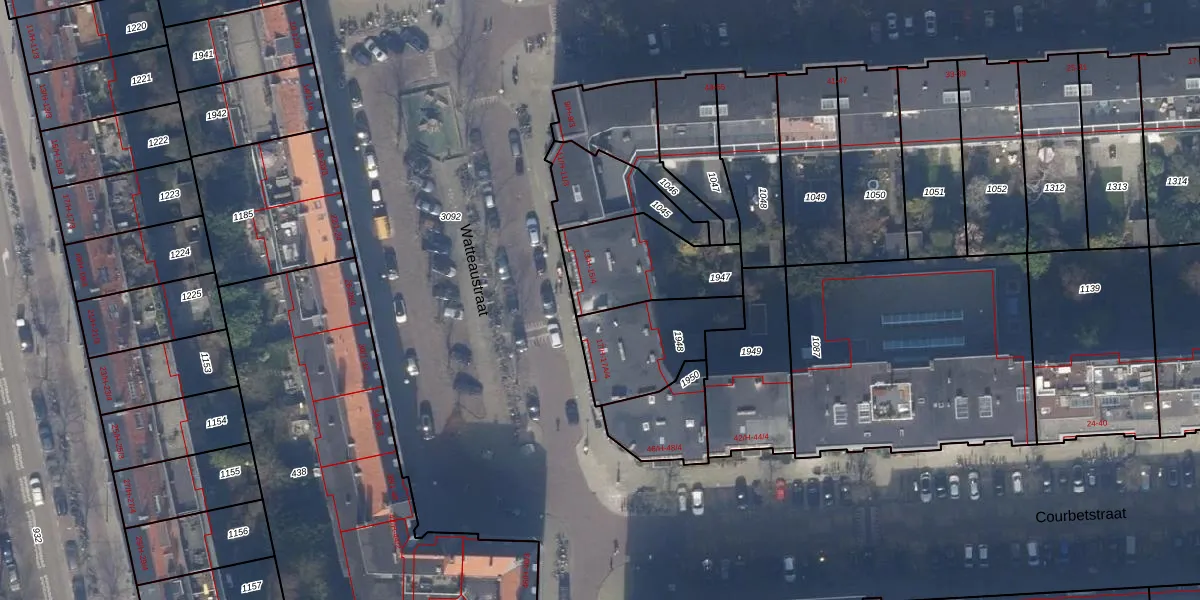 Watteaustraat 15-4 is gelegen op kadastraal perceel ASD23AB1947. Deze kadastrale aanduiding is uniek en wordt gebruikt door het Kadaster om eigendomsrechten en andere zakelijke rechten vast te leggen. Het perceel maakt onderdeel uit van de kadastrale gemeente Amsterdam.