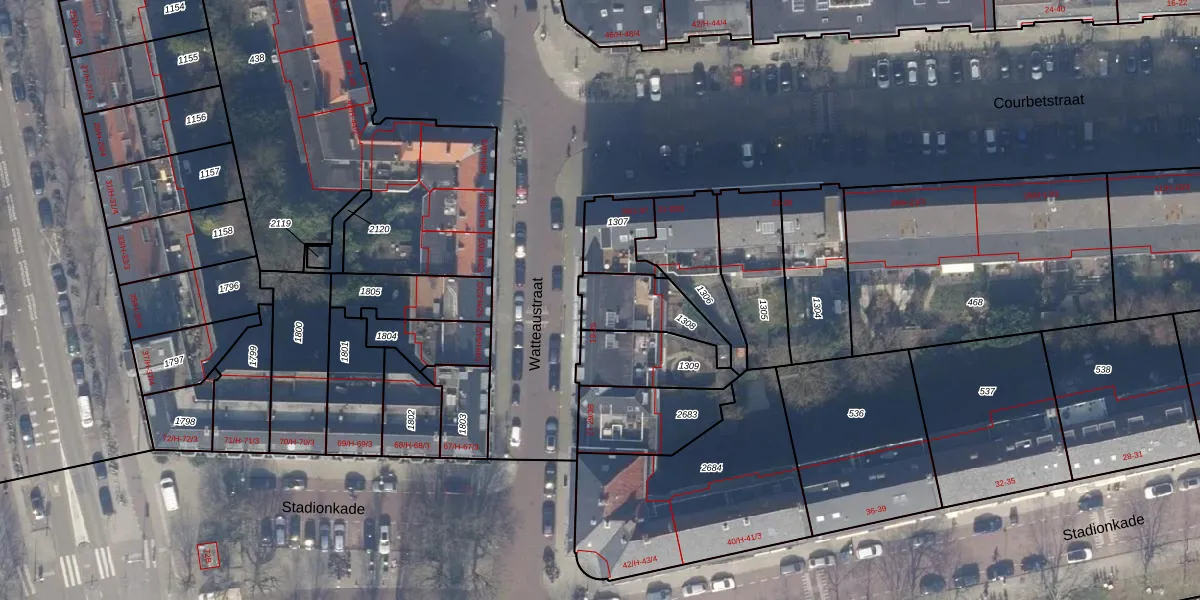 Watteaustraat 19 is gelegen op kadastraal perceel ASD23AB1308. Deze kadastrale aanduiding is uniek en wordt gebruikt door het Kadaster om eigendomsrechten en andere zakelijke rechten vast te leggen. Het perceel maakt onderdeel uit van de kadastrale gemeente Amsterdam.