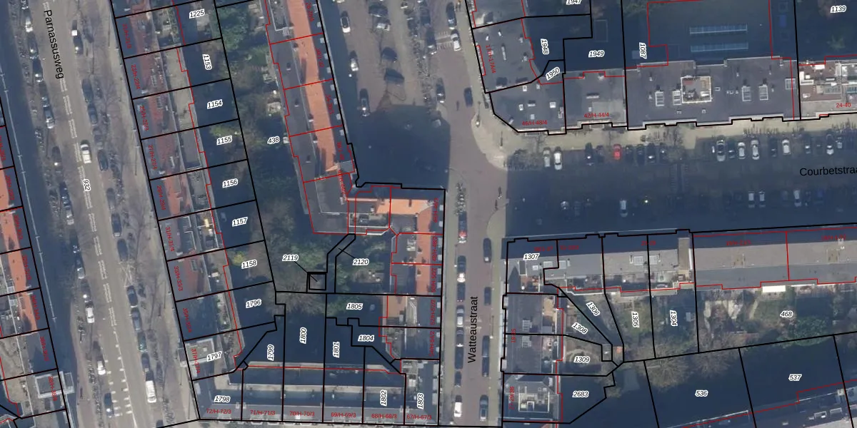 Het perceel waarop Watteaustraat 46-1 staat heeft een oppervlakte van 2063 m². Dit is een zeer groot perceel. De perceeloppervlakte wordt geregistreerd door het Kadaster. Gedetailleerde informatie over de maten van dit perceel kunt u vinden in het rapport Kadastrale kaart met maatvoering van Watteaustraat 46-1.