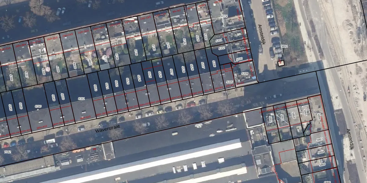 Het adres is gelegen op perceel 5528 in de sectie V en de kadastrale gemeente Amsterdam. De kadastrale aanduiding is aldus ASD18-V-5528. Het perceel is 150 m² groot. Dat is kleiner dan de gemiddelde perceeloppervlakte in Amsterdam, dat op 559,23 m² ligt. De grootste perceeloppervlakte in de kadastrale gemeente is 12,5 ha. De kleinste oppervlakte bedraagt 0 m². Er zijn 4 adressen aanwezig op het perceel. In de Basisregistratie Kadaster (BRK) werden de grenzen van het perceel geregistreerd op 26-09-2006.