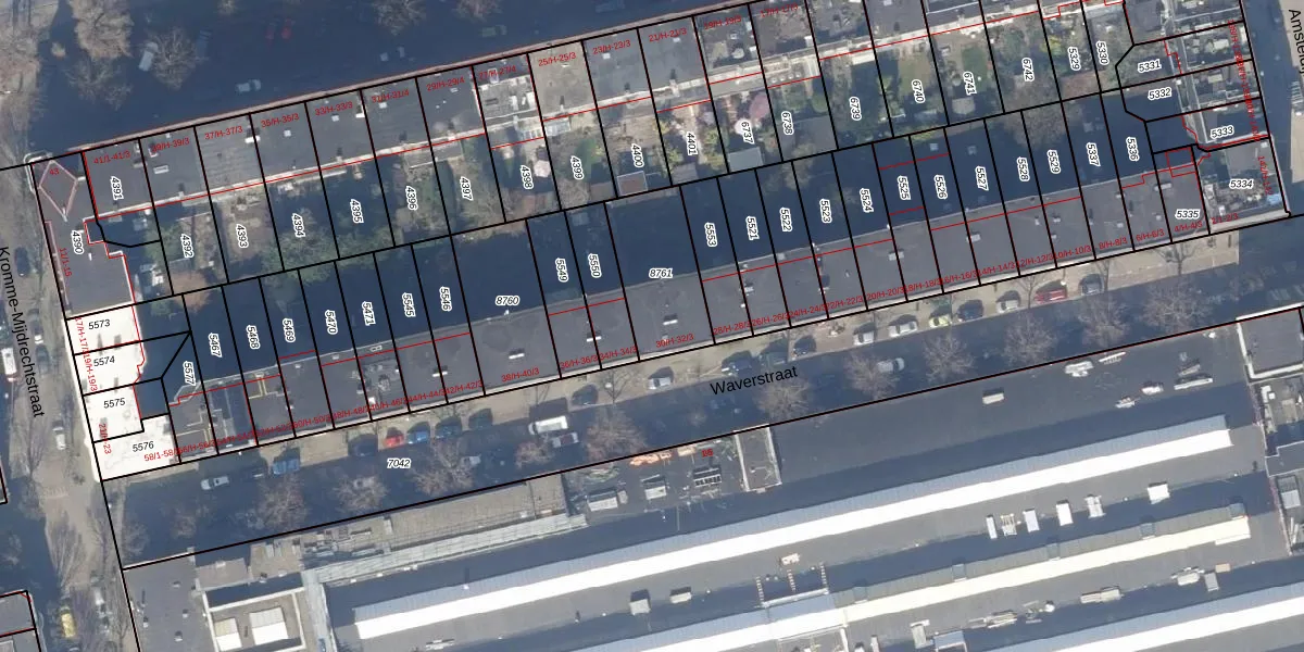 Waverstraat 32-2 is gelegen op kadastraal perceel ASD18V8761. Deze kadastrale aanduiding is uniek en wordt gebruikt door het Kadaster om eigendomsrechten en andere zakelijke rechten vast te leggen. Het perceel maakt onderdeel uit van de kadastrale gemeente Amsterdam.