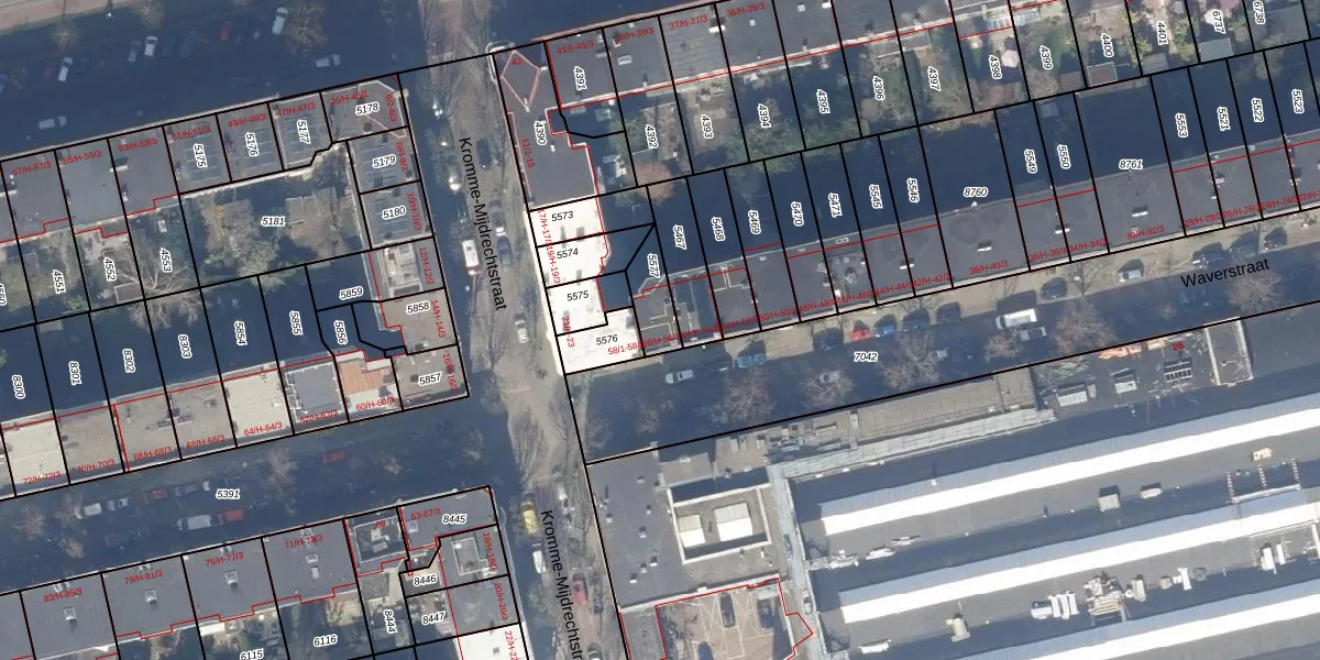 Het adres is gelegen op perceel 5577 in de sectie V en de kadastrale gemeente Amsterdam. De kadastrale aanduiding is aldus ASD18-V-5577. Het perceel is 96 m² groot. Dat is kleiner dan de gemiddelde perceeloppervlakte in Amsterdam, dat op 559,23 m² ligt. De grootste perceeloppervlakte in de kadastrale gemeente is 12,5 ha. De kleinste oppervlakte bedraagt 0 m². Er zijn 4 adressen aanwezig op het perceel. De laatste wijziging in het de Basisregistratie Kadaster (BRK) was op 29-09-2006.