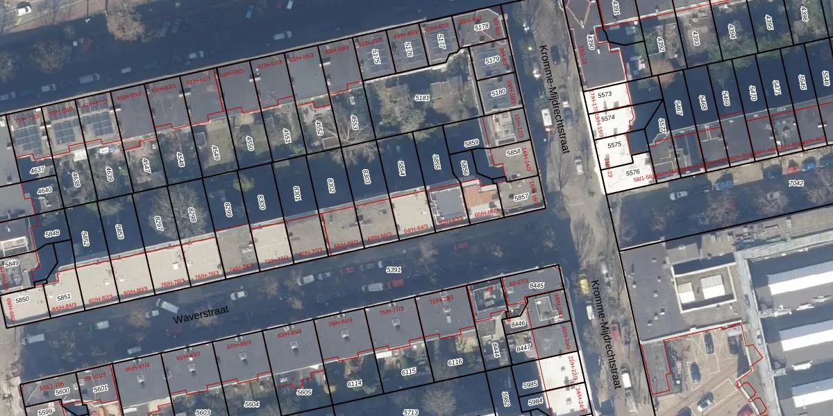 Het adres is gelegen op perceel 5854 in de sectie V en de kadastrale gemeente Amsterdam. De kadastrale aanduiding is aldus ASD18-V-5854. Het perceel is 215 m² groot. Dat is kleiner dan de gemiddelde perceeloppervlakte in Amsterdam, dat op 559,23 m² ligt. Het grootste perceel in de kadastrale gemeente is 12,5 ha. Het kleinste perceel heeft een oppervlakte van 0 m². Op het perceel zijn 4 adressen aanwezig. De laatste wijziging in het de Basisregistratie Kadaster (BRK) was op 26-09-2006.