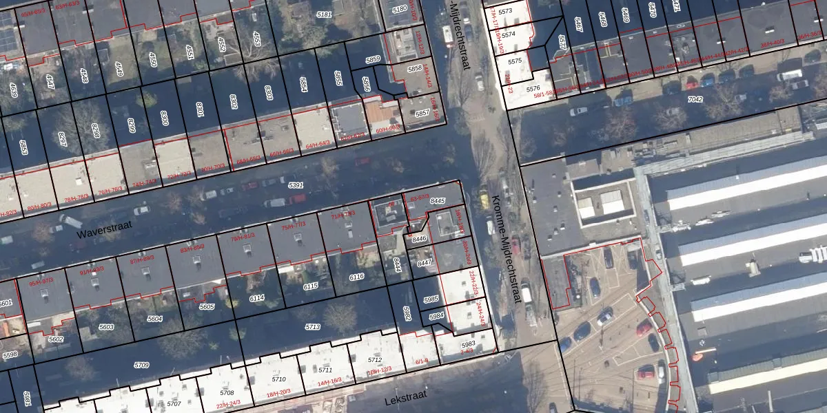 Het adres is gelegen op perceel 8445 in de sectie V en de kadastrale gemeente Amsterdam. De kadastrale aanduiding is aldus ASD18-V-8445. Het perceel is 99 m² groot. Dat is kleiner dan de gemiddelde perceeloppervlakte in Amsterdam, dat op 559,23 m² ligt. Het grootste perceel in de kadastrale gemeente is 12,5 ha. Het kleinste perceel heeft een oppervlakte van 0 m². Er zijn 7 adressen aanwezig op het perceel. De laatste wijziging in het de Basisregistratie Kadaster (BRK) was op 29-09-2006.