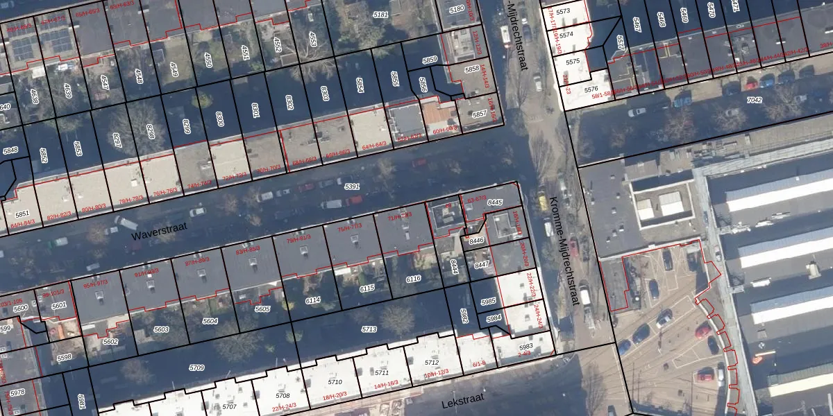 Het adres is gelegen op perceel 6116 in de sectie V en de kadastrale gemeente Amsterdam. De kadastrale aanduiding is aldus ASD18-V-6116. Het perceel is 267 m² groot. Dat is kleiner dan de gemiddelde perceeloppervlakte in Amsterdam, dat op 559,23 m² ligt. Het grootste perceel in de kadastrale gemeente is 12,5 ha. Het kleinste perceel heeft een oppervlakte van 0 m². Op het perceel zijn 8 adressen aanwezig. De huidige grenzen van het perceel zijn digitaal in de Basisregistratie Kadaster (BRK) geregistreerd op 29-09-2006.