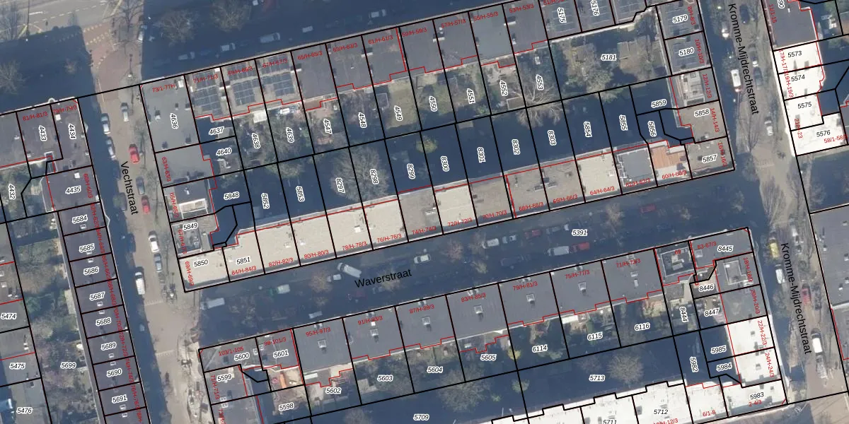 Het adres is gelegen op perceel 8299 in de sectie V en de kadastrale gemeente Amsterdam. De kadastrale aanduiding is aldus ASD18-V-8299. Het perceel is 216 m² groot. Dat is kleiner dan de gemiddelde perceeloppervlakte in Amsterdam, dat op 559,23 m² ligt. Het grootste perceel in de kadastrale gemeente is 12,5 ha. Het kleinste perceel heeft een oppervlakte van 0 m². Op het perceel liggen in totaal 4 adressen. De huidige grenzen van het perceel zijn digitaal in de Basisregistratie Kadaster (BRK) geregistreerd op 29-09-2006.