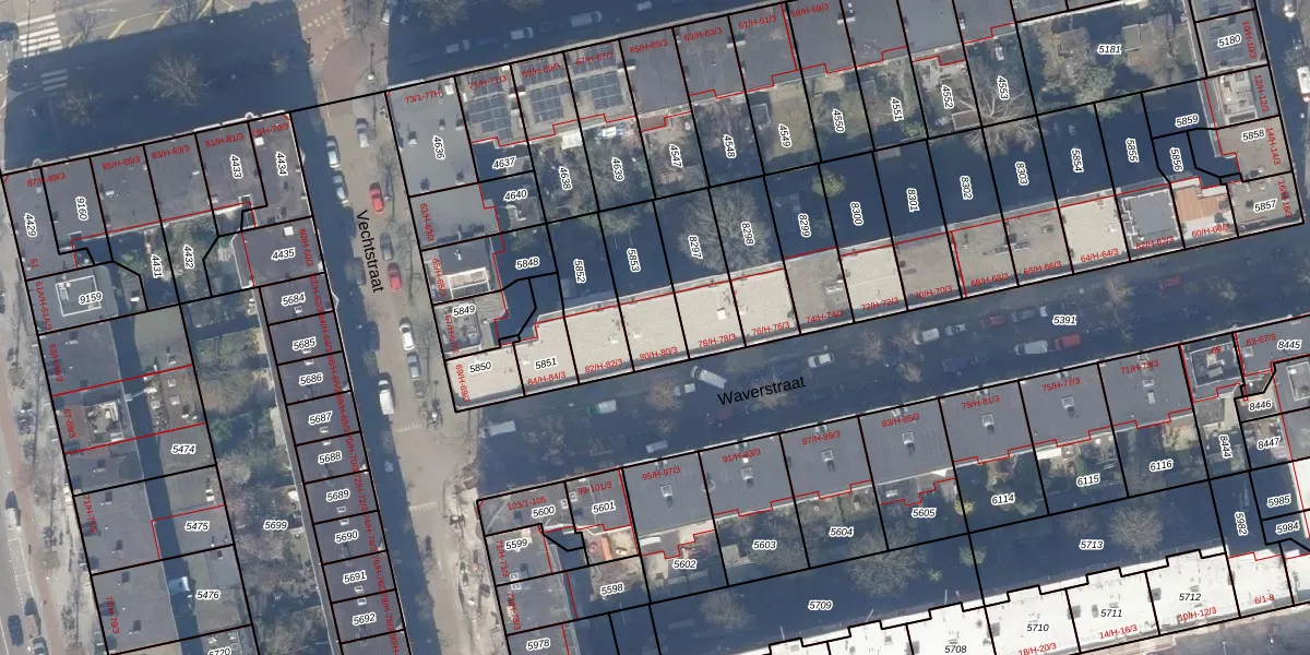 Het adres is gelegen op perceel 5853 in de sectie V en de kadastrale gemeente Amsterdam. De kadastrale aanduiding is aldus ASD18-V-5853. Het perceel is 215 m² groot. Dat is kleiner dan de gemiddelde perceeloppervlakte in Amsterdam, dat op 558,8 m² ligt. Het grootste perceel in de kadastrale gemeente is 12,5 ha. Het kleinste perceel heeft een oppervlakte van 0 m². Op het perceel zijn 4 adressen aanwezig. De laatste wijziging in het de Basisregistratie Kadaster (BRK) was op 29-09-2006.
