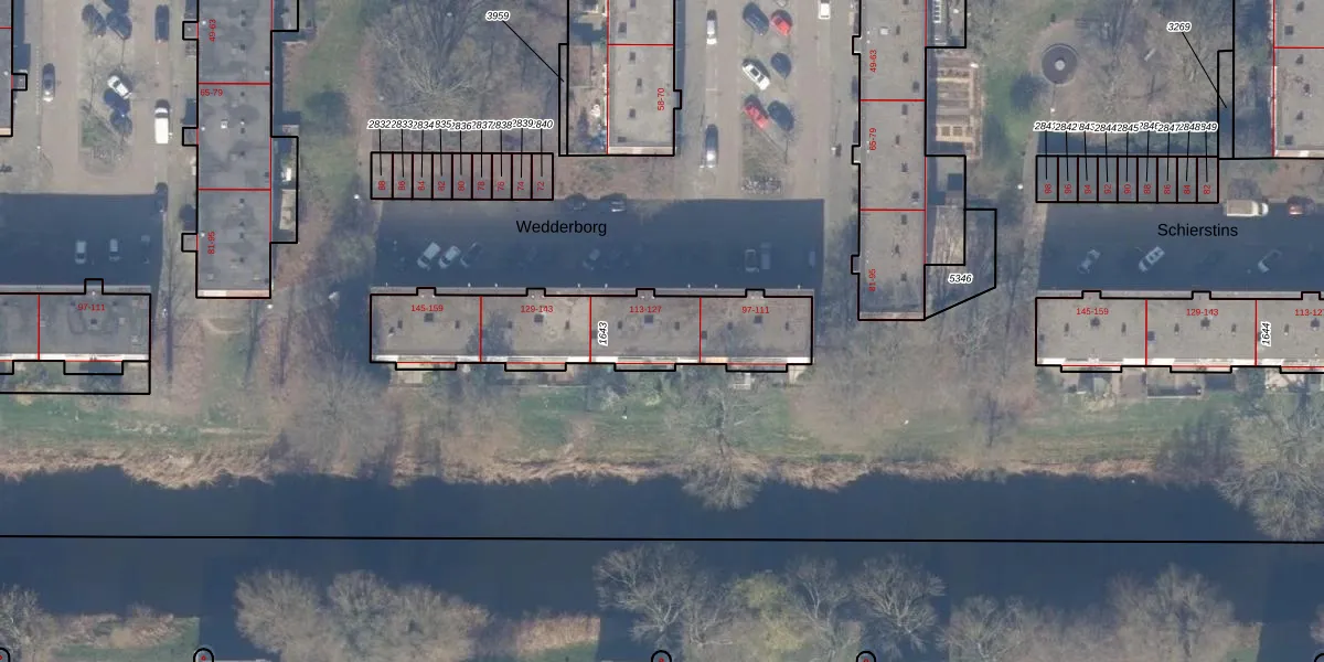 Het perceel waarop Wedderborg 115 staat heeft een oppervlakte van 725 m². Dit is een groot perceel. De perceeloppervlakte wordt geregistreerd door het Kadaster. Gedetailleerde informatie over de maten van dit perceel kunt u vinden in het rapport Kadastrale kaart met maatvoering van Wedderborg 115.
