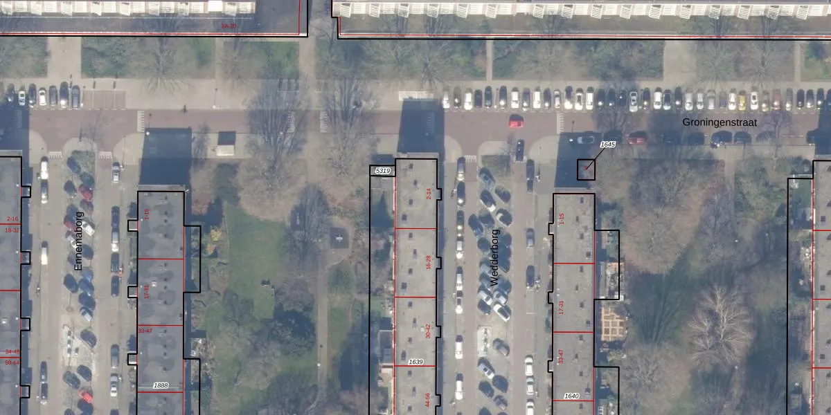 Het perceel waarop Wedderborg 12 staat heeft een oppervlakte van 1322 m². Dit is een zeer groot perceel. De perceeloppervlakte wordt geregistreerd door het Kadaster. Gedetailleerde informatie over de maten van dit perceel kunt u vinden in het rapport Kadastrale kaart met maatvoering van Wedderborg 12.