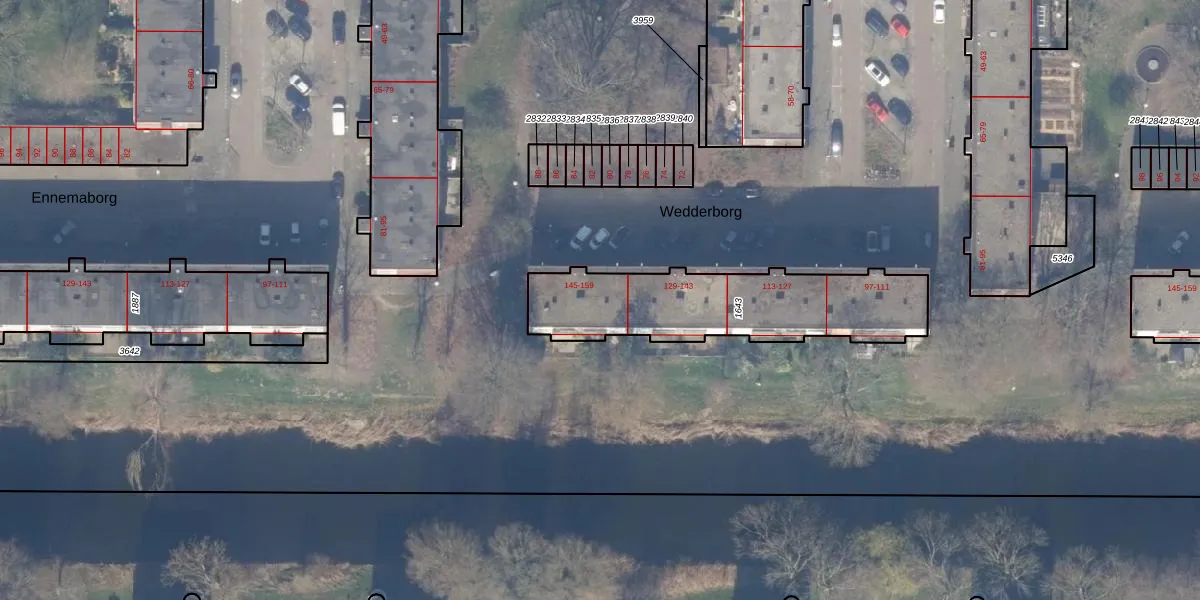 Het perceel waarop Wedderborg 147 staat heeft een oppervlakte van 725 m². Dit is een groot perceel. De perceeloppervlakte wordt geregistreerd door het Kadaster. Gedetailleerde informatie over de maten van dit perceel kunt u vinden in het rapport Kadastrale kaart met maatvoering van Wedderborg 147.