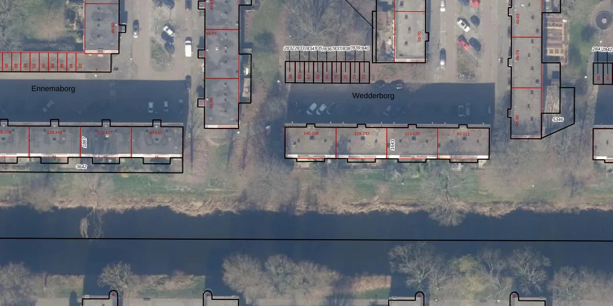 Het perceel waarop Wedderborg 159 staat heeft een oppervlakte van 725 m². Dit is een groot perceel. De perceeloppervlakte wordt geregistreerd door het Kadaster. Gedetailleerde informatie over de maten van dit perceel kunt u vinden in het rapport Kadastrale kaart met maatvoering van Wedderborg 159.