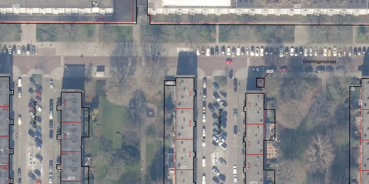 Het perceel waarop Wedderborg 4 staat heeft een oppervlakte van 1322 m². Dit is een zeer groot perceel. De perceeloppervlakte wordt geregistreerd door het Kadaster. Gedetailleerde informatie over de maten van dit perceel kunt u vinden in het rapport Kadastrale kaart met maatvoering van Wedderborg 4.