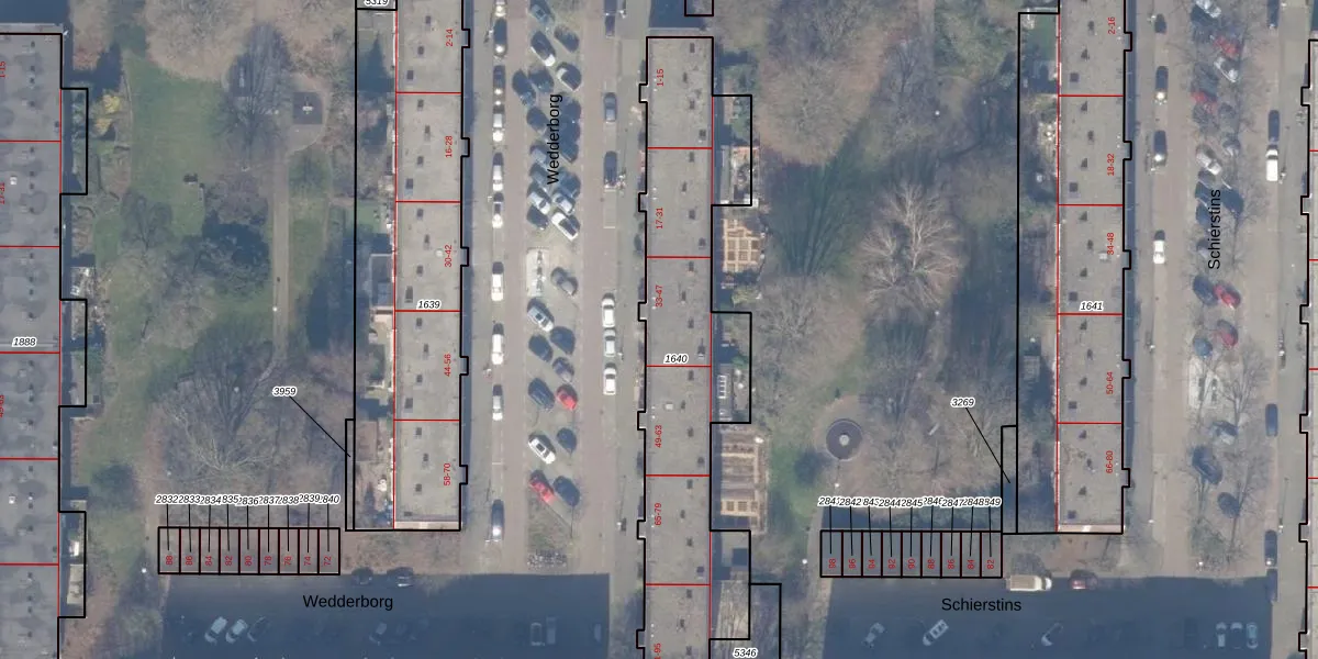 Het perceel waarop Wedderborg 41 staat heeft een oppervlakte van 1312 m². Dit is een zeer groot perceel. De perceeloppervlakte wordt geregistreerd door het Kadaster. Gedetailleerde informatie over de maten van dit perceel kunt u vinden in het rapport Kadastrale kaart met maatvoering van Wedderborg 41.