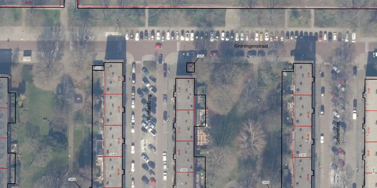 Het perceel waarop Wedderborg 5 staat heeft een oppervlakte van 1312 m². Dit is een zeer groot perceel. De perceeloppervlakte wordt geregistreerd door het Kadaster. Gedetailleerde informatie over de maten van dit perceel kunt u vinden in het rapport Kadastrale kaart met maatvoering van Wedderborg 5.