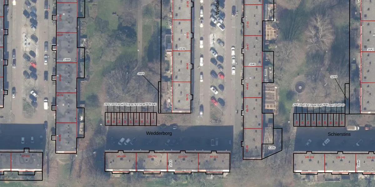 Het perceel waarop Wedderborg 58 staat heeft een oppervlakte van 1322 m². Dit is een zeer groot perceel. De perceeloppervlakte wordt geregistreerd door het Kadaster. Gedetailleerde informatie over de maten van dit perceel kunt u vinden in het rapport Kadastrale kaart met maatvoering van Wedderborg 58.
