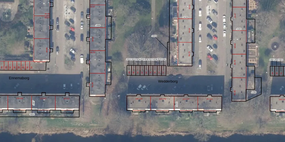 Het perceel waarop Wedderborg 82 staat heeft een oppervlakte van 21 m². Dit is een klein perceel. De perceeloppervlakte wordt geregistreerd door het Kadaster. Gedetailleerde informatie over de maten van dit perceel kunt u vinden in het rapport Kadastrale kaart met maatvoering van Wedderborg 82.