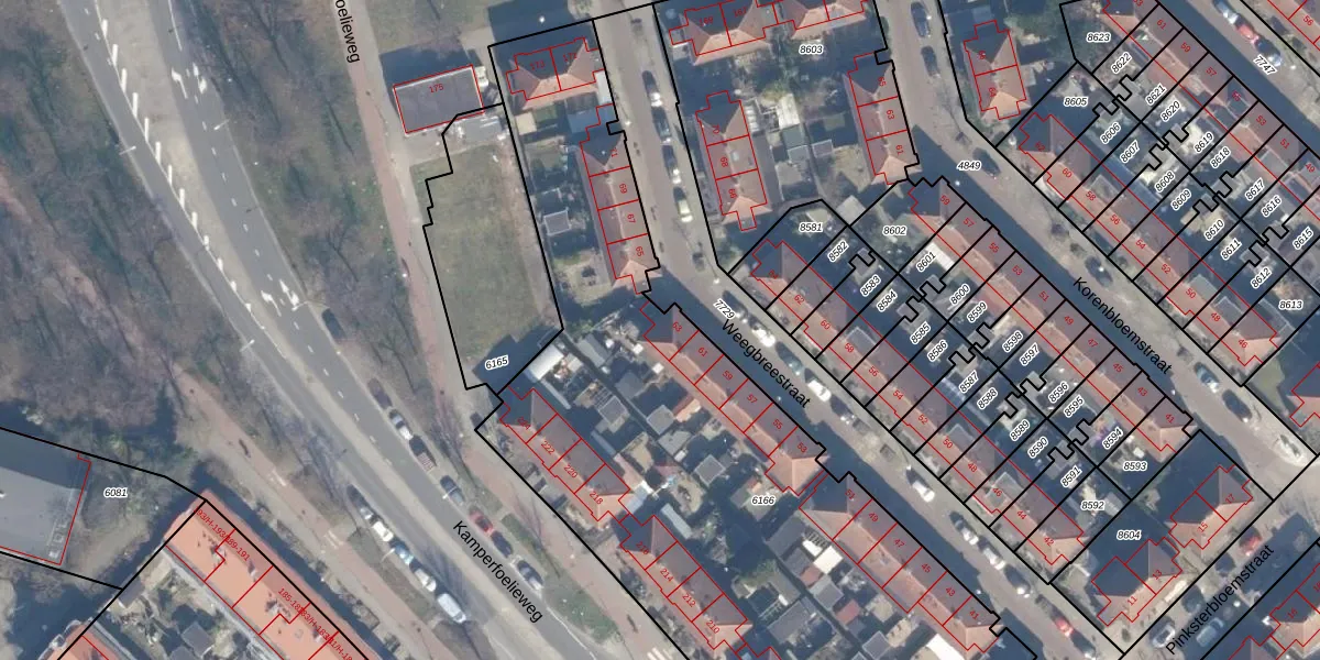 Het perceel waarop Weegbreestraat 63 staat heeft een oppervlakte van 4074 m². Dit is een zeer groot perceel. De perceeloppervlakte wordt geregistreerd door het Kadaster. Gedetailleerde informatie over de maten van dit perceel kunt u vinden in het rapport Kadastrale kaart met maatvoering van Weegbreestraat 63.