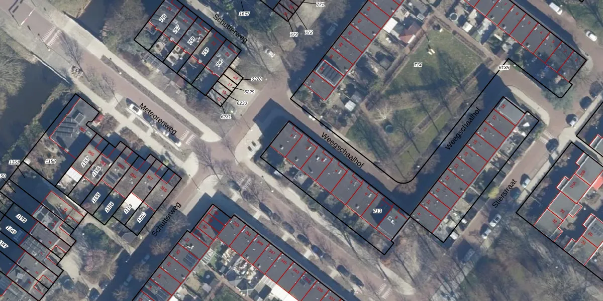 Het perceel waarop Weegschaalhof 2 staat heeft een oppervlakte van 1519 m². Dit is een zeer groot perceel. De perceeloppervlakte wordt geregistreerd door het Kadaster. Gedetailleerde informatie over de maten van dit perceel kunt u vinden in het rapport Kadastrale kaart met maatvoering van Weegschaalhof 2.