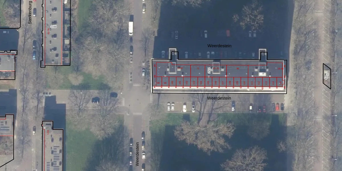 Weerdestein 100 is gelegen op kadastraal perceel ASD30AK2501. Deze kadastrale aanduiding is uniek en wordt gebruikt door het Kadaster om eigendomsrechten en andere zakelijke rechten vast te leggen. Het perceel maakt onderdeel uit van de kadastrale gemeente Amsterdam.