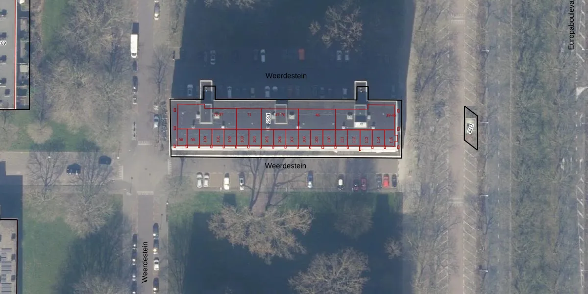 Het perceel waarop Weerdestein 107 staat heeft een oppervlakte van 1564 m². Dit is een zeer groot perceel. De perceeloppervlakte wordt geregistreerd door het Kadaster. Gedetailleerde informatie over de maten van dit perceel kunt u vinden in het rapport Kadastrale kaart met maatvoering van Weerdestein 107.