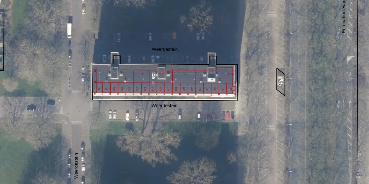 Het perceel waarop Weerdestein 109 staat heeft een oppervlakte van 1564 m². Dit is een zeer groot perceel. De perceeloppervlakte wordt geregistreerd door het Kadaster. Gedetailleerde informatie over de maten van dit perceel kunt u vinden in het rapport Kadastrale kaart met maatvoering van Weerdestein 109.