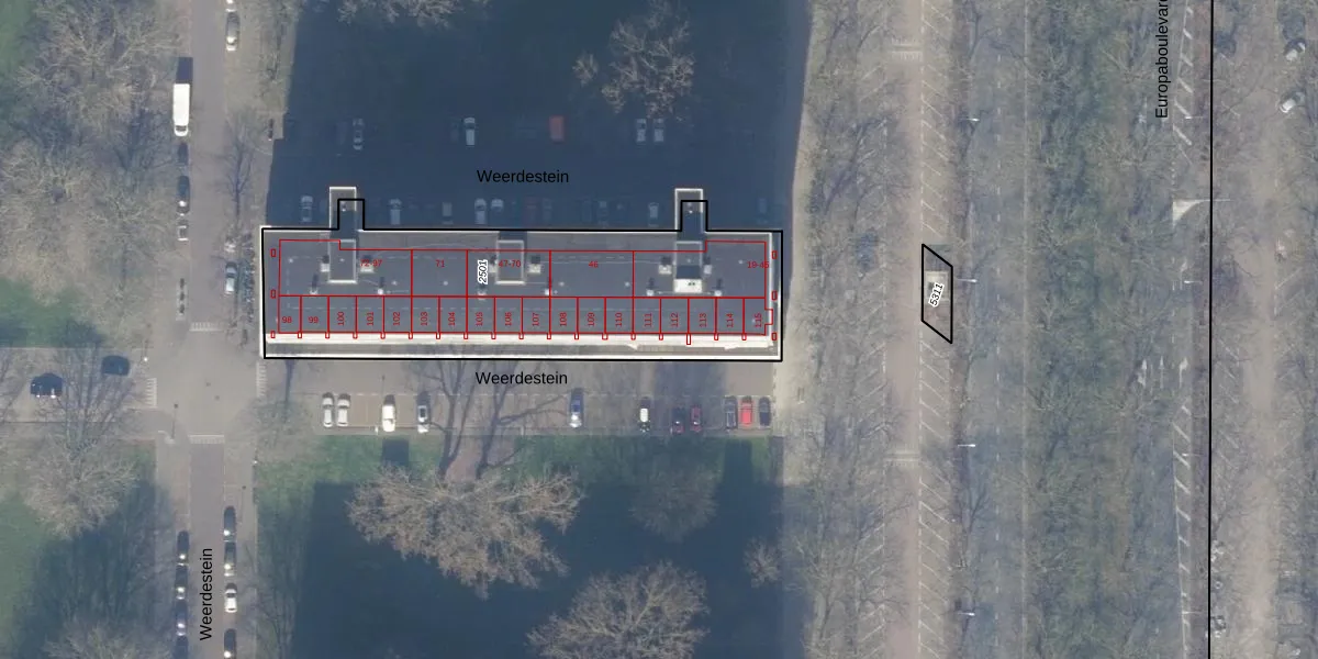 Weerdestein 111 is gelegen op kadastraal perceel ASD30AK2501. Deze kadastrale aanduiding is uniek en wordt gebruikt door het Kadaster om eigendomsrechten en andere zakelijke rechten vast te leggen. Het perceel maakt onderdeel uit van de kadastrale gemeente Amsterdam.