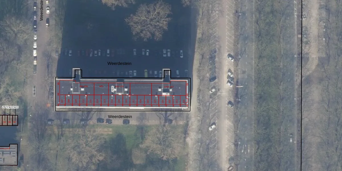 Het perceel waarop Weerdestein 140 staat heeft een oppervlakte van 1563 m². Dit is een zeer groot perceel. De perceeloppervlakte wordt geregistreerd door het Kadaster. Gedetailleerde informatie over de maten van dit perceel kunt u vinden in het rapport Kadastrale kaart met maatvoering van Weerdestein 140.